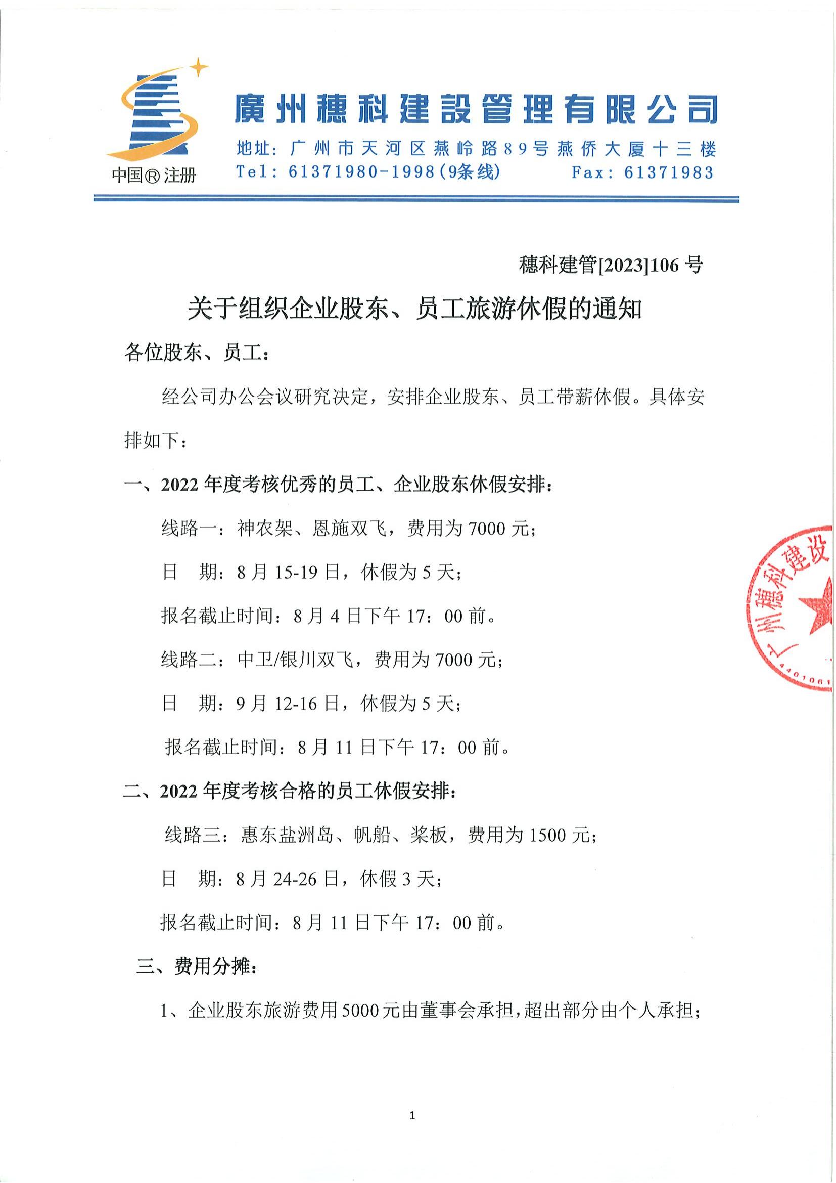 關(guān)于組織企業(yè)股東、員工旅游休假的通知